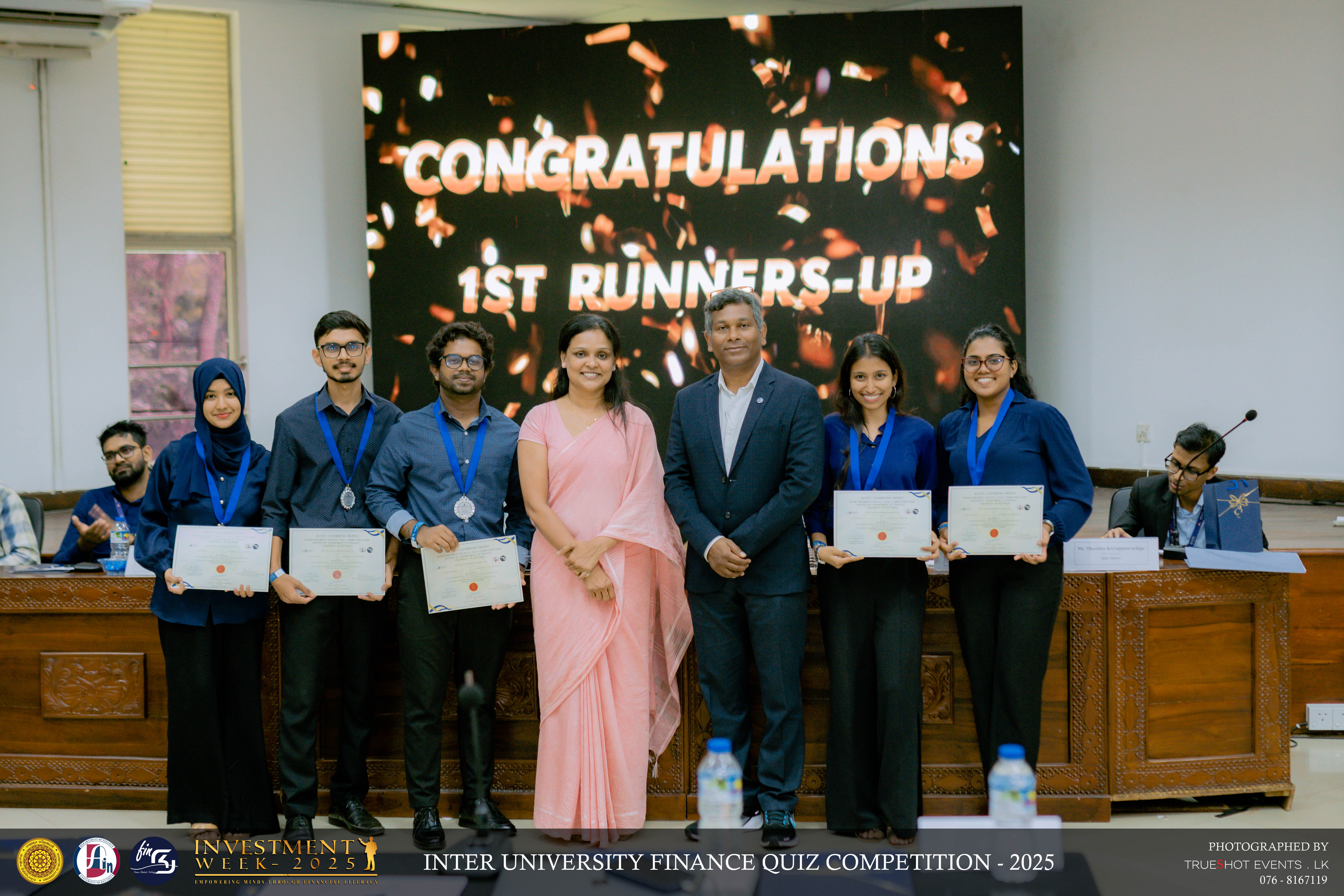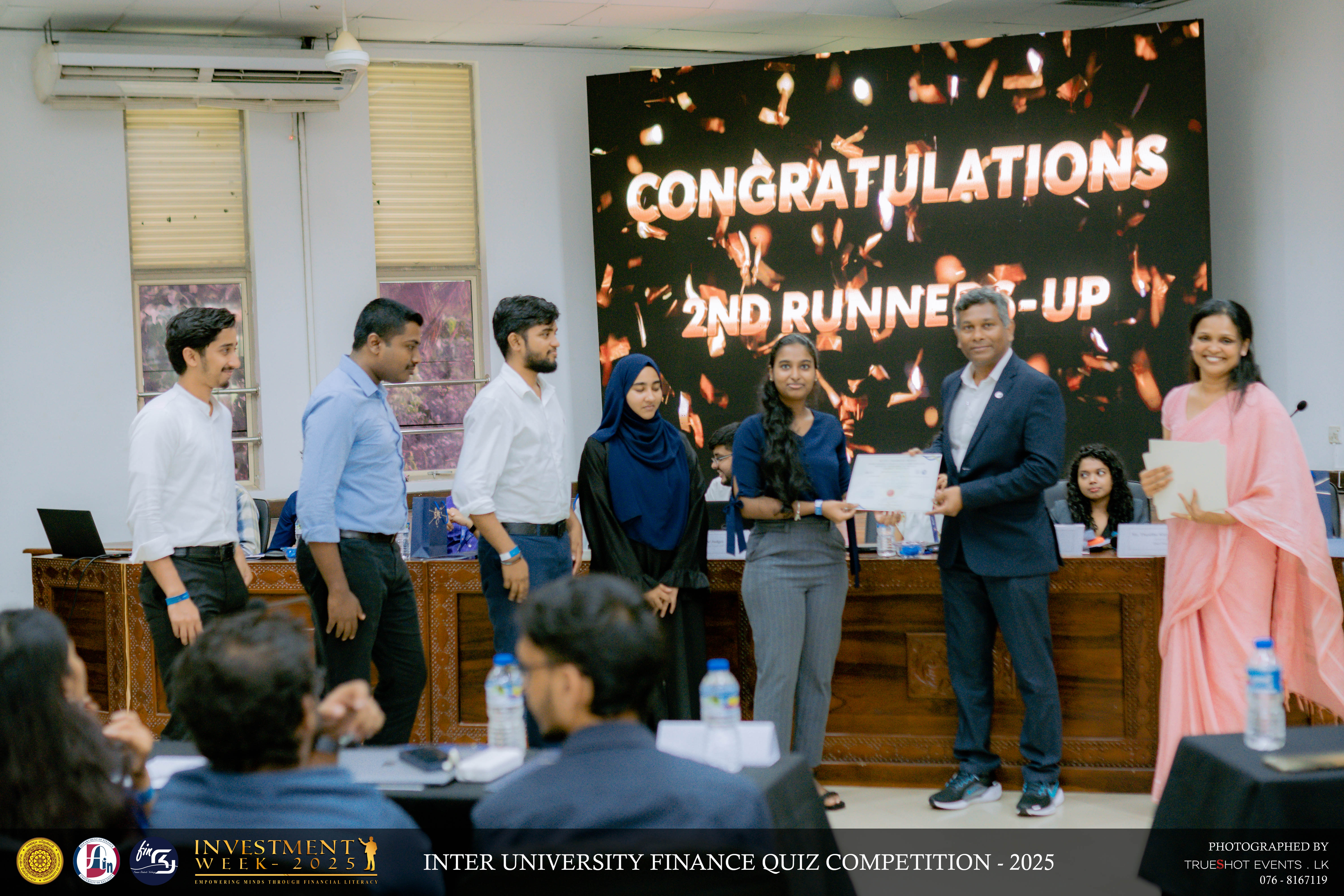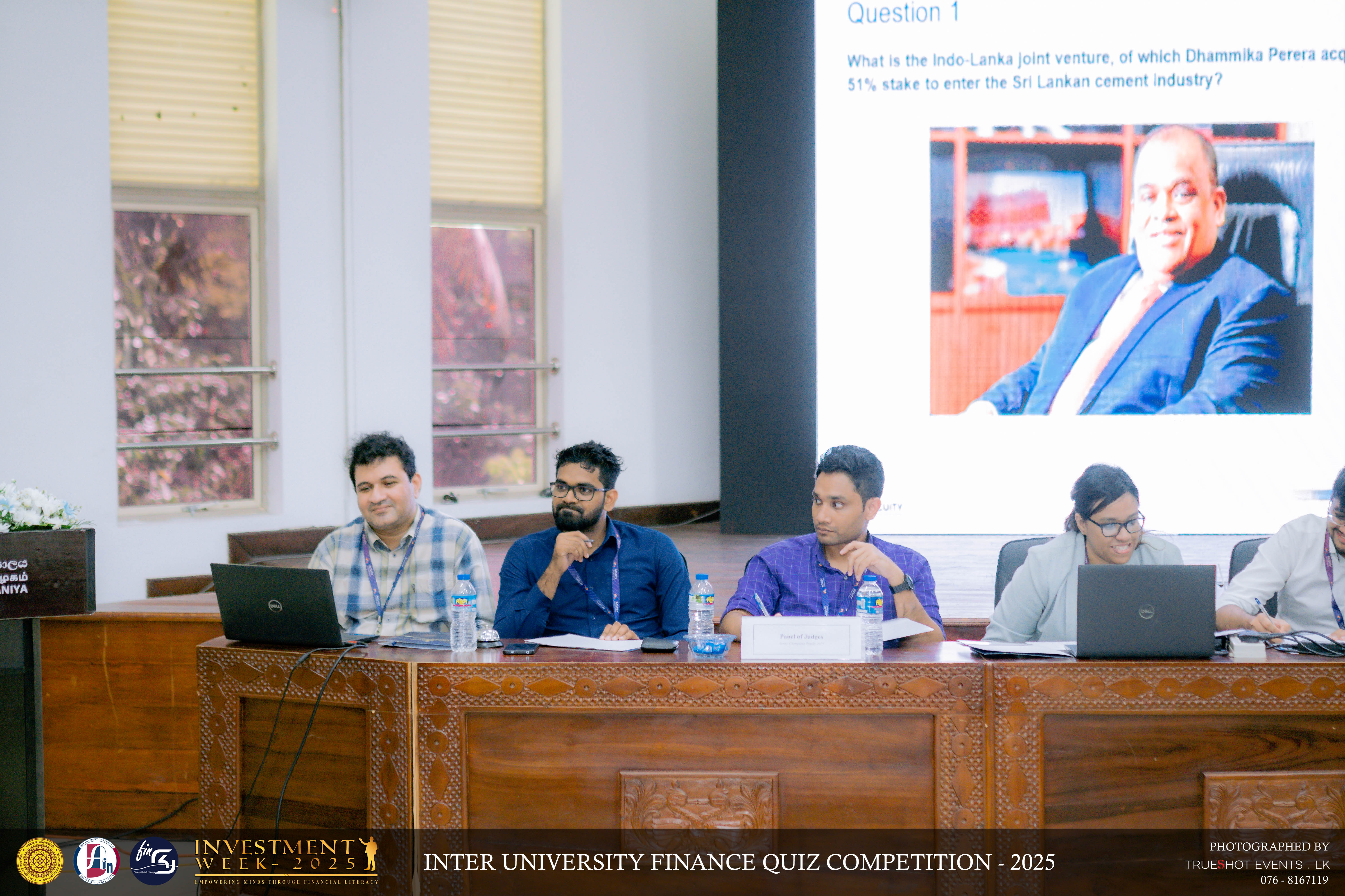 Continuing the series of impactful events under Investment Week 2025 the Acuity Champions Trophy, Inter-University Finance Quiz Competition 2025 was held on the morning of 16th October, bringing together the brightest young minds in finance from universities across Sri Lanka. Conducted in collaboration with Acuity Knowledge Partners, the competition brought together 22 teams from state and private universities across Sri Lanka to showcase their knowledge in finance, economics, investments, and current affairs.
