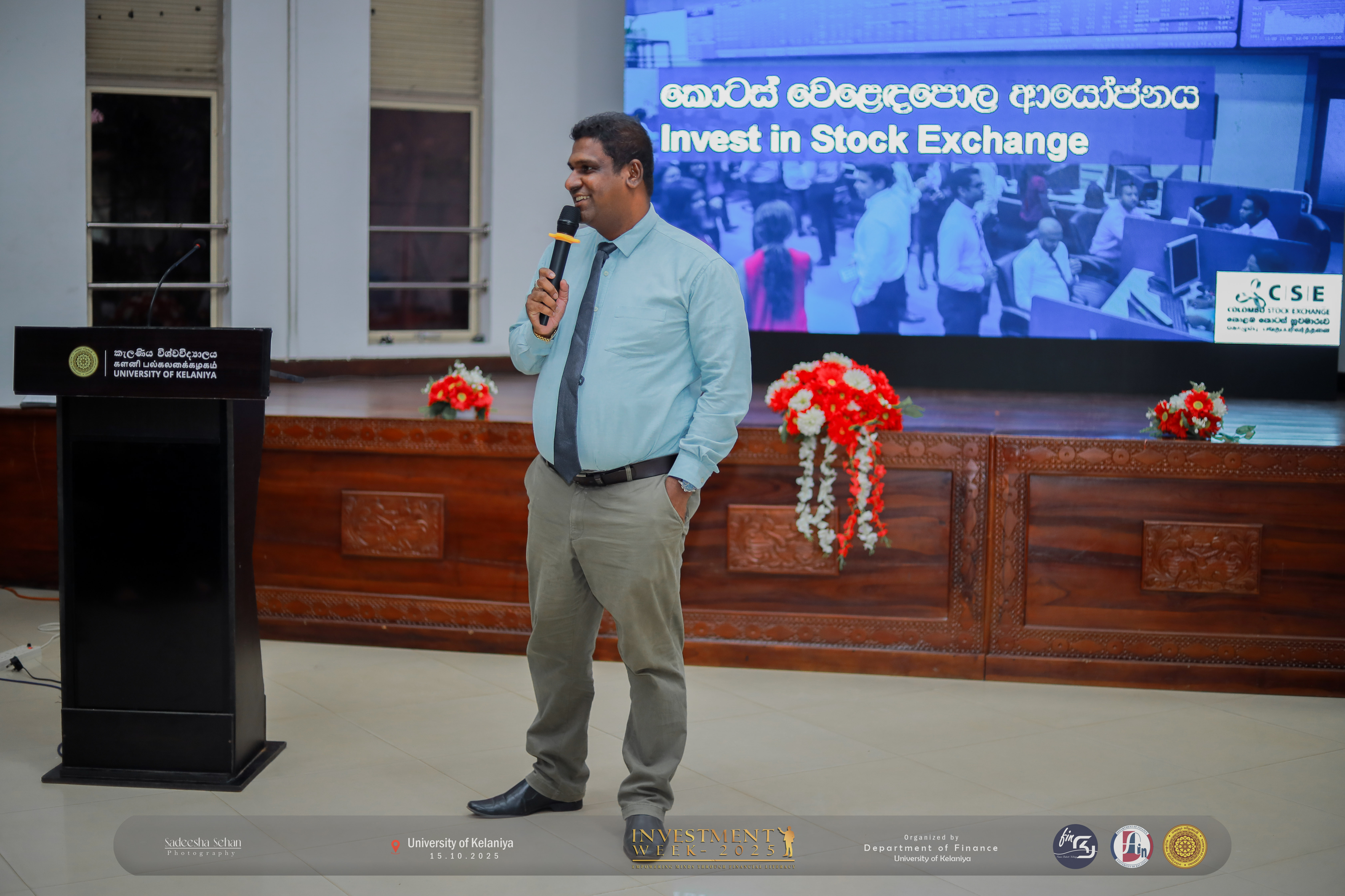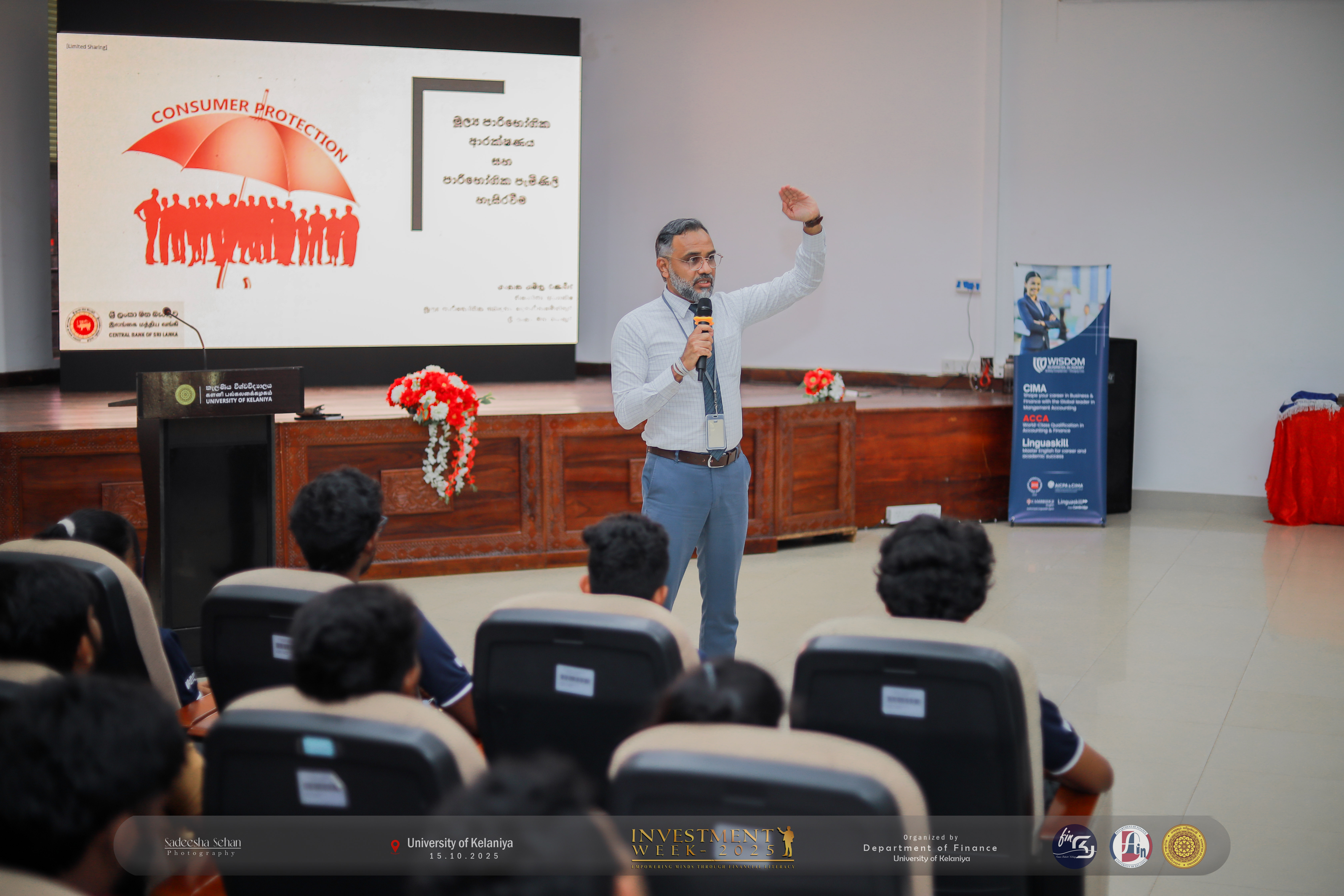 The Finance Students’ Association, Department of Finance, University of Kelaniya Department organized Investment Week 2025 in collaboration with the Central Bank of Sri Lanka (CBSL) and the United Nations Development Programme (UNDP) to promote financial awareness and empowerment.